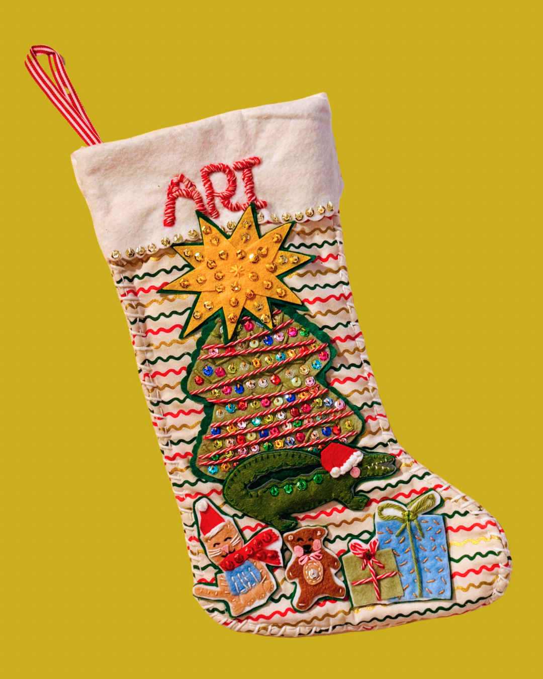 I create folk art in traditional handcrafted mediums such as embroidery, paint, and quilting. Much of what I create is an expression of pride of place and an ode to the creatures and culture of Southwest Louisiana. Here you will find some recent pieces including murals, paintings/painted things, embroidered art, and embroidered ornaments.